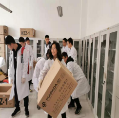 活动中,药学系师生不畏辛劳,齐心协力,在实验室人员的指挥下搬仪器、清垃圾、擦灰尘,大家分工合作、忙而不乱、干劲冲天。经过一个多小时的劳动,实验室很快呈现出了干净整洁的新面貌。